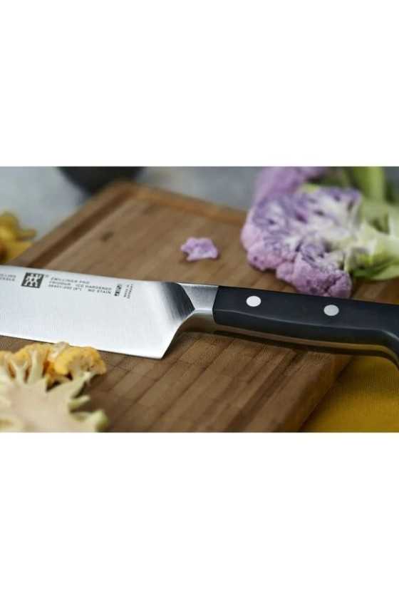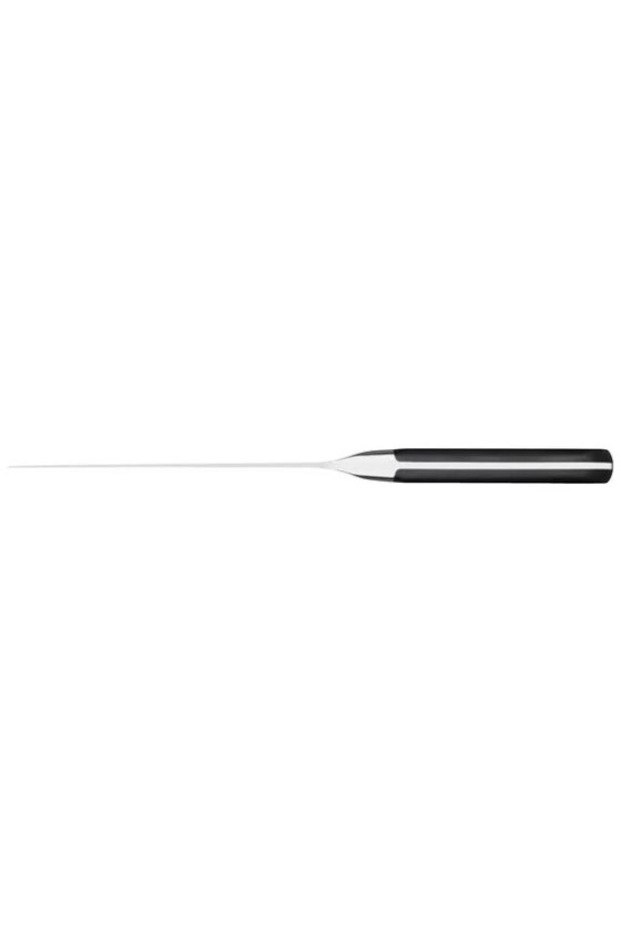 The Forged Olive butcher's knife is super sharp and has a 25.5 cm long blade that curves, making it ideal for cutting large pieces of meat. This comes in handy when you're slicing a nice piece of meat for the BBQ or your Green Egg. Like the entire Forged Olive series, this beautiful and robust Butcher's Knife is hand-forged from Japanese steel (hardness 58 Rockwell) and features the well-known hammer marks on the blade. The olive wood gives it a beautiful appearance and feels comfortable in your hand. The Forged Olive butcher's knife is, of course, packaged in a beautiful wooden box, making it a great gift. The blade is 2 mm thick and 255 mm long. Unfortunately, the Forged Olive Butcher Knife is not dishwasher safe. Keep your knife looking great for a long time with the sturdy leather Forged Leather sheath for the Forged butcher's knife.