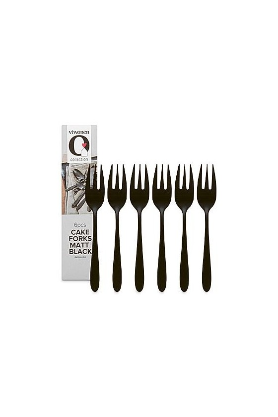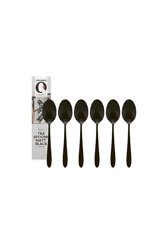 This elegant cutlery set from VT Wonen gives your table a modern, sturdy look. The set consists of 6 forks, 6 knives, and 6 spoons, all with a matte black finish. The cutlery is made from high-quality metal and designed for everyday use.