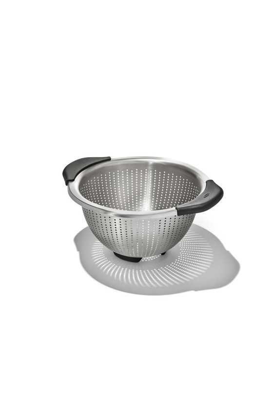 This can opener with click closure from OXO Good Grips makes opening cans easy. When you squeeze the can opener, the closure clicks shut and the opener clamps onto the edge of the can. This means you don't have to hold the can tightly while opening it. The comfortable, soft handles give you extra strength to pierce the can, and the oversized knob turns extra easily. The sharp-edged cutting wheel is made of sturdy stainless steel, and the soft, comfortable grips absorb pressure. After opening, you release the lock with your thumb and the opener pops off. The can opener should be hand-washed.