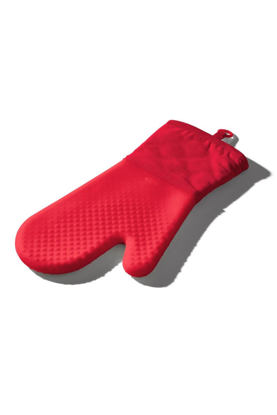 This black silicone oven mitt from OXO Good Grips protects your hand against high temperatures up to 230°C. The diamond-shaped pattern is non-slip and offers extra protection against heat. The generous oven mitt also protects your wrist. And if it gets dirty, you can easily clean the silicone exterior. Just with a cloth or a bit of water. The fabric interior insulates and is extra comfortable. It is machine washable.