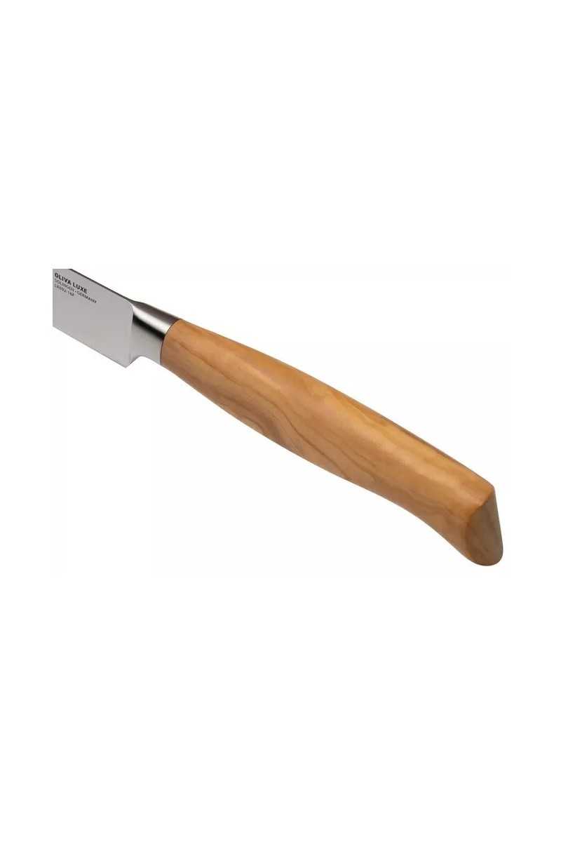 The Messermeister Oliva Luxe kitchen knives live up to their name. Thanks to the razor-sharp blade, the olive wood handle, and the excellent finish, the kitchen knives are both functional and luxurious. The kitchen knives are made and hand-finished in Solingen, Germany. An Oliva Luxe kitchen knife is more than just a tool. It is a luxury and prominent element in your kitchen. Rediscover the joy of cooking with the Messermeister Oliva Luxe kitchen knives.