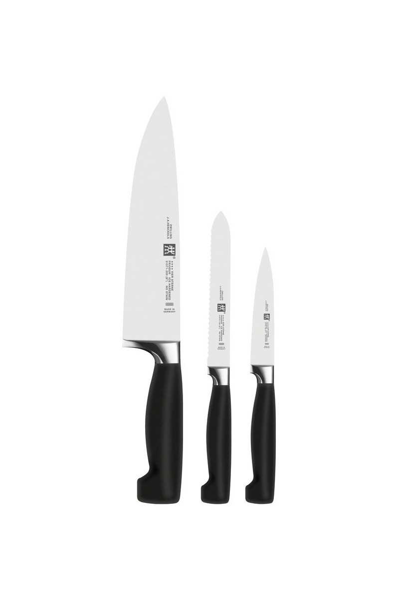Zwilling Henckels Four Star knives are perfectly balanced and durable, the knives are forged from one piece, and are safe for your fingers due to the seamless transition to the blade. The blade of the Four Star knives is ice-hardened.Â