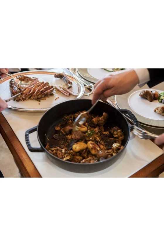 For chefs seeking incredible flavors, the round cinnamon-colored cocotte from Staub is the perfect choice. This cast iron cooking pot is a true all-rounder and impresses with its perfect stewing performance, allowing your casseroles to retain all their natural flavors. But this popular French pot has much more to offer: it is very robust, easy to clean, and keeps your dish warm for a long time. As the cherry on top, it is also suitable for storing cold food. Do you like to prepare fish, meat, and vegetables in a gentle, healthy way? Then a cocotte is exactly what you need. The cocotte from Staub is suitable for beginners, hobby cooks, and professional chefs. The inside of the pot is finished with matte black enamel, which quickly transfers heat to the cooking food. Additionally, depending on the recipe, the heat or cold is evenly distributed to the food. These properties only improve the more you use the pot. The cocotte is suitable for all cooking surfaces, including induction plates. The pot has a diameter of 24 cm and a capacity of 3.8 liters. Do you want to make a perfect casserole with vegetables, meat, or fish? Then this practical cocotte from Staub with its superior material properties is your ideal kitchen helper.