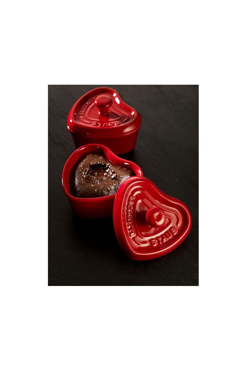 The mini cocotte with a diameter of 10 cm is excellent for making small portions of gratin or soufflé. With the heart-shaped mini cocotte, you can serve dinner in style during a romantic evening. The pot is suitable for use in the oven and microwave. The high-quality ceramic distributes heat perfectly for the best results. With this cherry red mini cocotte from Staub, every culinary creation is a success.