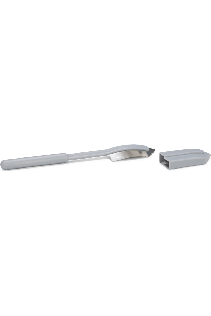 Het Patisse stokbroodmes is in zijn geheel 12,8 cm lang. Aan het uiteinde van het grijze kunststof heft bevindt zich een zeer dun en uiterst scherp stalen lemmet van 4 cm. Voor veilig opbergen wordt een beschermkapje dat stevig vastklikt meegeleverd.