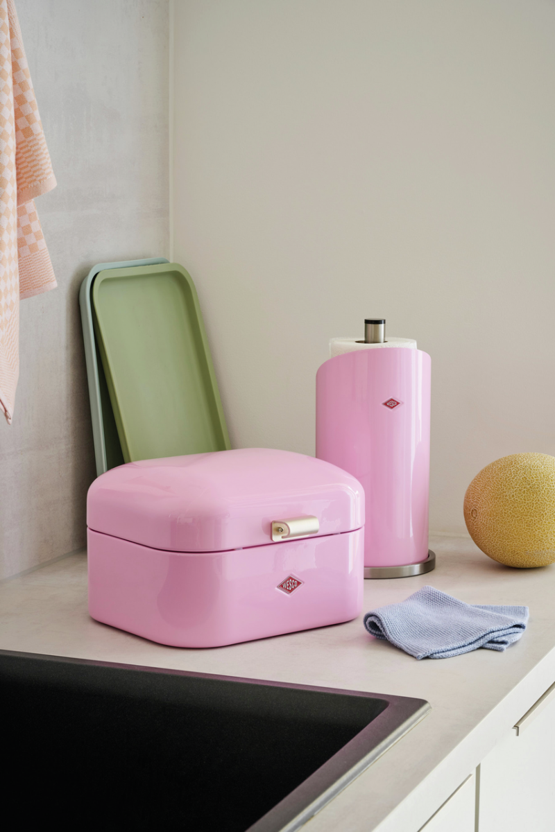 Dankzij de ventilatiegaten aan de achterkant kan de Mini Grandy® zelfs als koekjestrommel worden gebruikt. De stevige metalen scharnieren en het metalen handvat maken het doosje onverwoestbaar. De opbergdoos in klassieke retrostijl is verkrijgbaar in vele heldere Wesco kleuren.