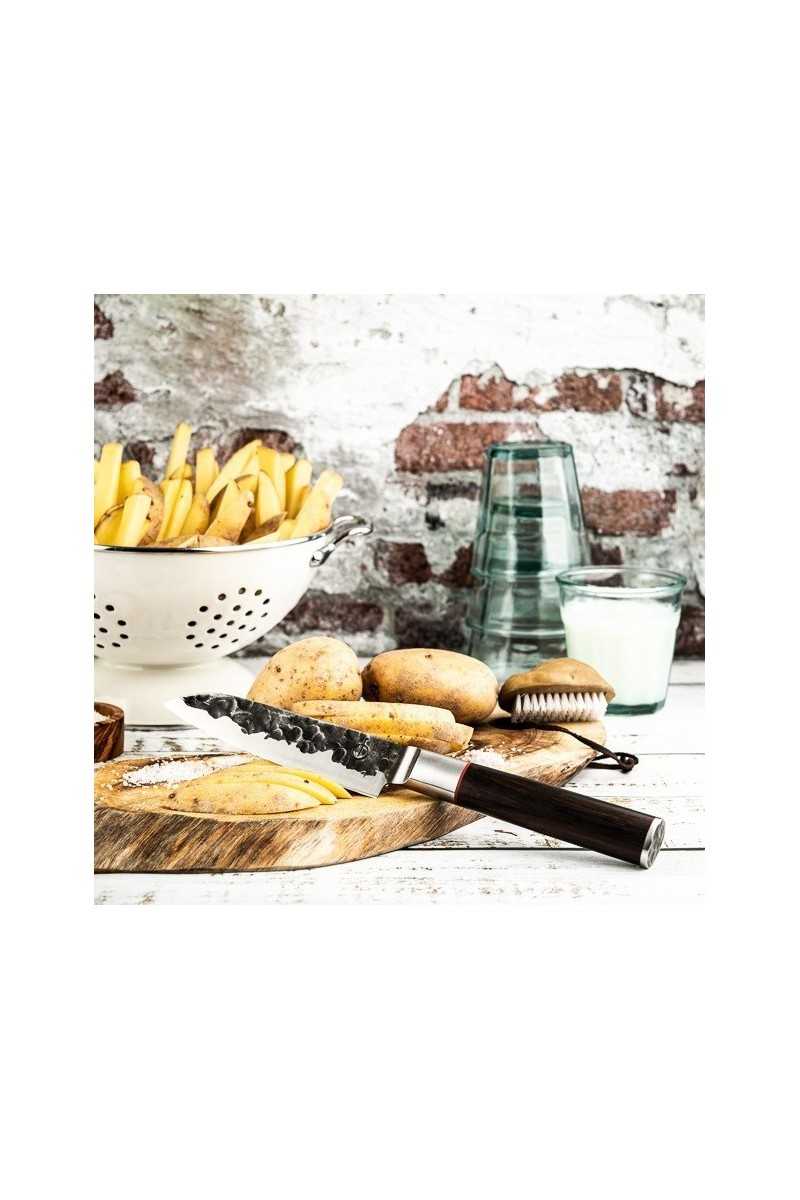 De unieke Forged messen zijn stoer, stijlvol en functioneel en betaalbaar, een echte musthave als je van koken en messen houdt. Een Forged mes is handgemaakt van Japans messenstaal met 58-60 Rockwell hardheid, superscherp geslepen en mooi ontworpen. De messen hebben een prachtige verpakking die de stoere uitstraling nog meer benadrukt. Koop je een Forged mes, dan merk je direct dat je iets bijzonders in de hand hebt: mooi, gebalanceerd en scherp. Hier blijf je van genieten. Een ambachtelijk Forged mes kopen kan in drie verschillende series met elk een eigen uitstraling, de stijlvolle Forged Sebra, de olijvenhouten Forged Olive, de robuuste Forged Brute, en de verfijndere Forged Intense. De stoere leren hoezen uit de Leather Forged serie bescherm je je messen en hou je ze scherp.