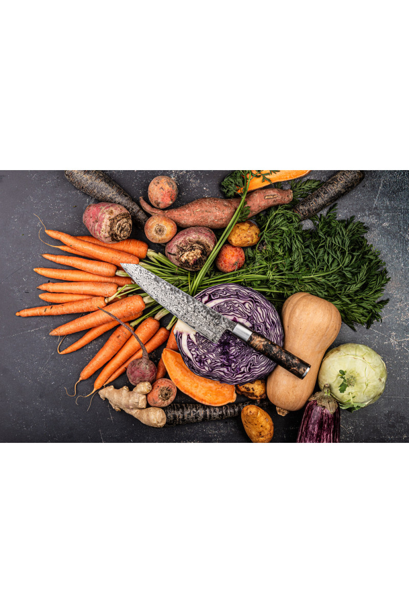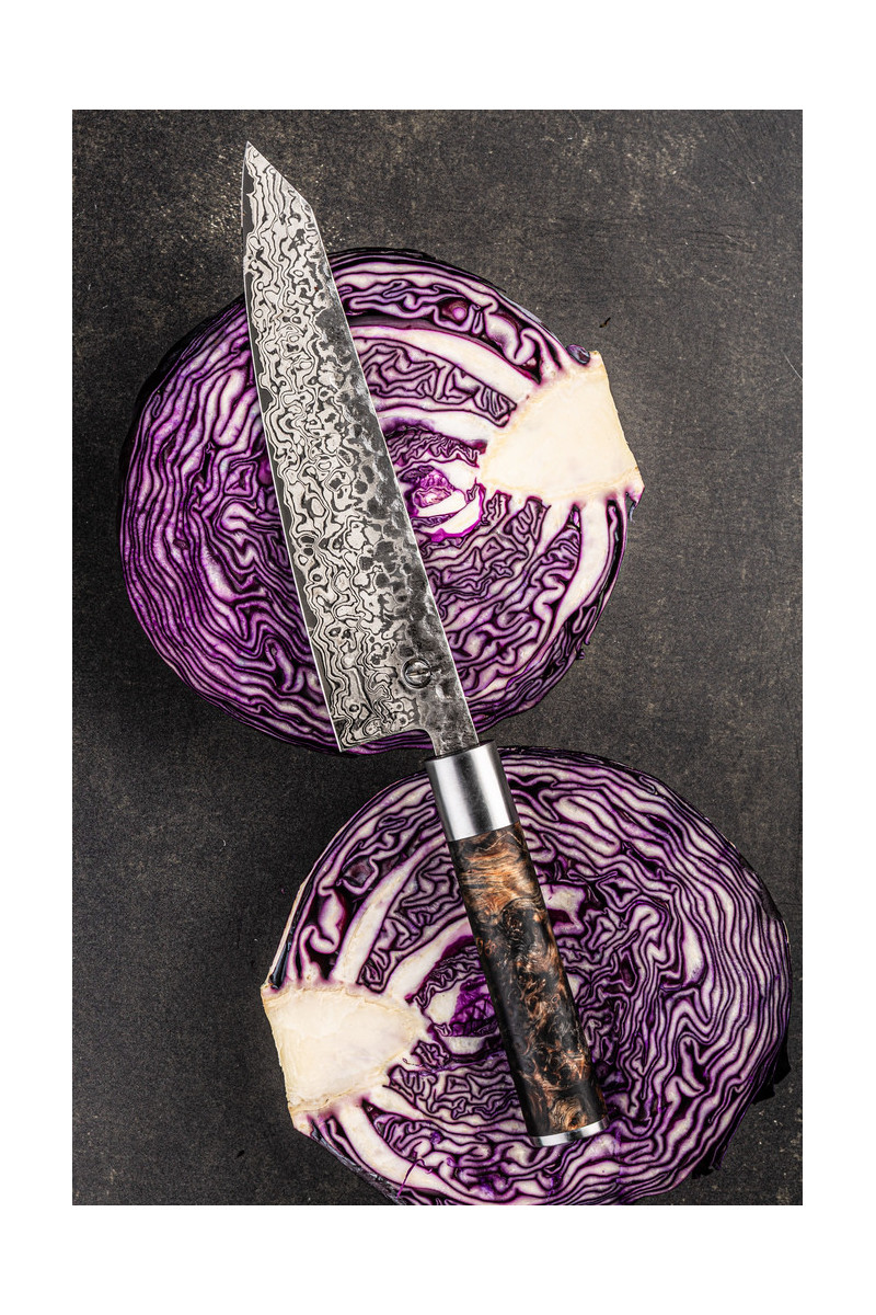De Kiritsuke combineert de precisie van een koksmes met het gemak van een santoku en de controle van een vis- of groentemes. Hierdoor vervangt dit mes moeiteloos meerdere messen in de keuken. Dankzij de genummerde limited edition is elk exemplaar uniek en geliefd bij liefhebbers.