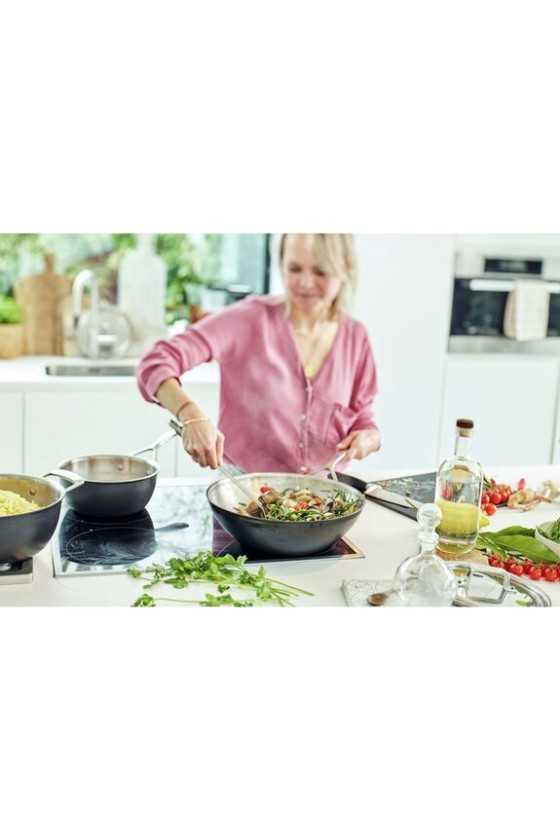 De gitzwarte, vuurvaste coating combineert meesterlijk met het zilverkleurige roestvrije staal. Opgebouwd in vijf lagen, zoals alleen Demeyere dat kan, voor optimale efficiëntie. Met stoere en slimme grepen voor nog meer gebruiksgemak. Black 5 is pure power, zowel qua kookcapaciteiten als looks. Superbetrouwbaar voor dagelijks gebruik binnen én zelfs voor culinaire avonturen buiten.