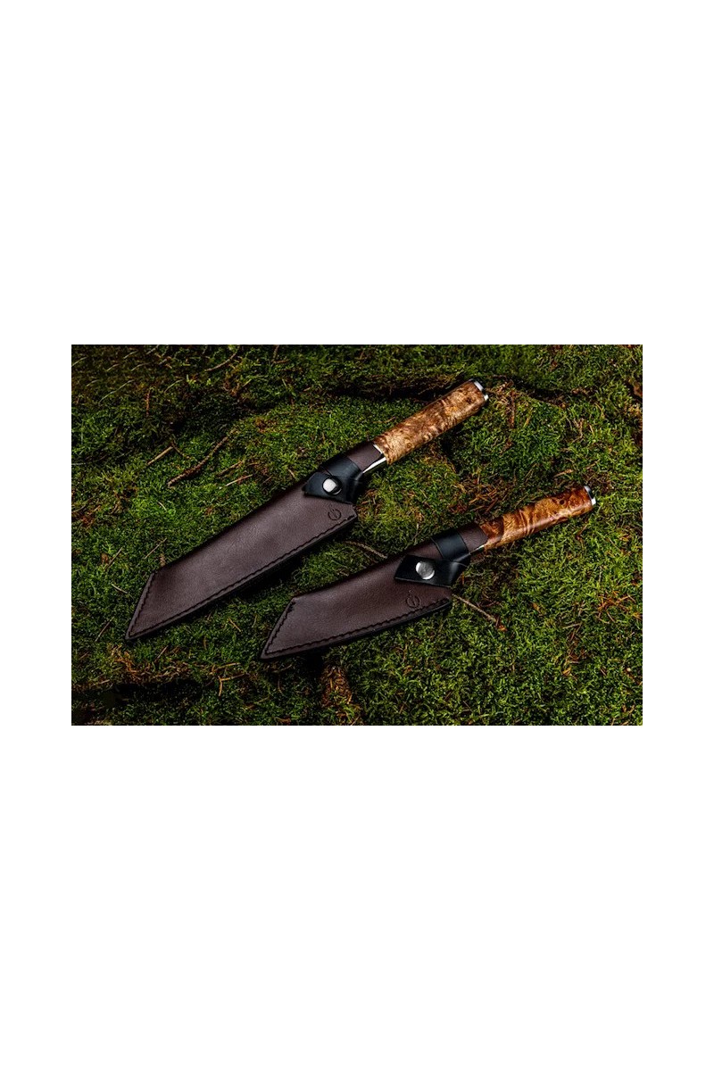 Bunkamessen zijn veelzijdige Japanse keukenmessen die bekend staan om hun unieke ontwerp en functionaliteit. Het meest opvallende aan een bunka mes is de kiritsuke-punt. Dit is een scherpe punt die uitermate geschikt is voor precisiewerk. Het bunkames is aan 2 kanten geslepen en is breed inzetbaar in de keuken, van grof hakken tot fijn snijden. De punt is zeer geschikt voor het verfijnde werk zoals het snijden van kruiden of het maken van decoratieve snedes in groenten. De set bestaat uit 2 messen, een mes met een lemmetlengte van 13 cm en een met een lemmetlengte van 18 cm. Om je messen goed op te bergen of te transporteren vind je voor beide messen een bijpassend lederen messenbeschermer erbij.