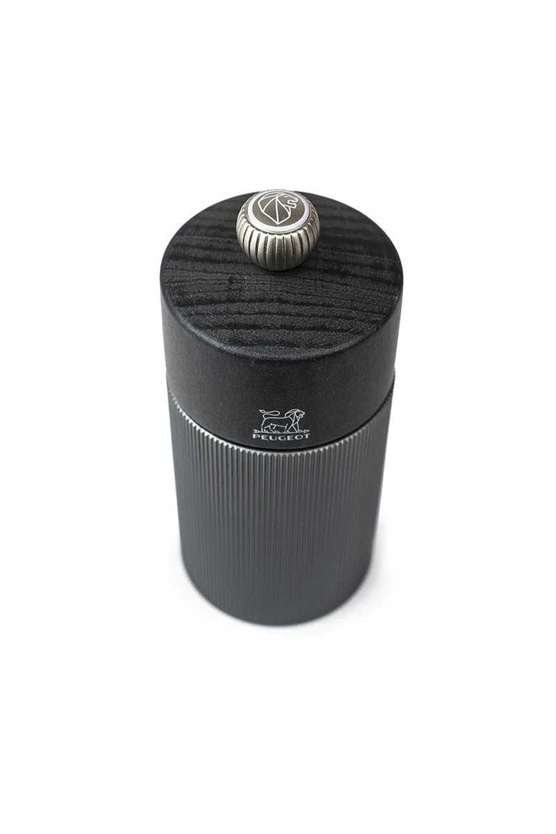 De Line Carbone zoutmolen heeft een nieuw, hedendaags design en biedt een gedurfde combinatie van materialen aan: een aluminium body waarvan de ribbels met het licht spelen en een houten kop (PEFC gecertificeerd) in een subtiele metaalachtige grafietkleur. Hij is gemaakt in Frankrijk en weerspiegelt de vakkennis van Peugeot: het speciale maalwerk voor droog zout heeft een levenslange garantie en dankzij zijn knop bovenaan kan je de maalgraad eenvoudig en efficiënt instellen (hoe sterker hij is aangedraaid, hoe fijner de het zout).