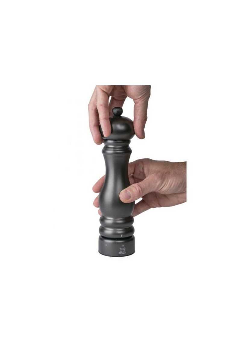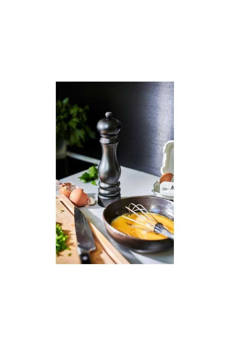 De Paris Chef Carbone zoutmolen is niet zomaar een zoutmolen. Dankzij de antracietkleurige metalen afwerking is dit een prachtig object dat tot zijn recht komt een de hedendaagse keuken. Uitgerust met een stalen maalwerk, ontworpen voor het malen van droge zoutkristallen, verbergt hij tevens een krachtig systeem met een instelbare maalgraad, waarbij de markeringen op de voet van de molen de geselecteerde maalgraad aangeven tussen fijn en grof. -