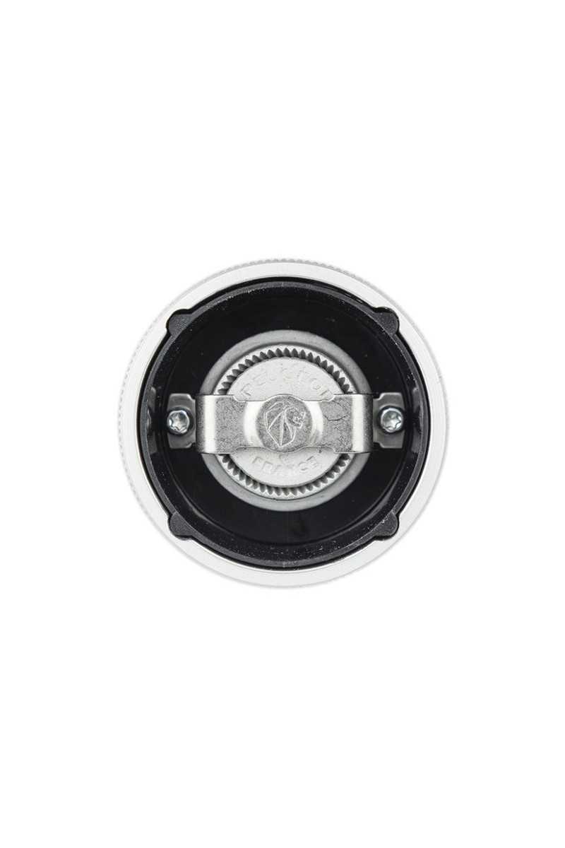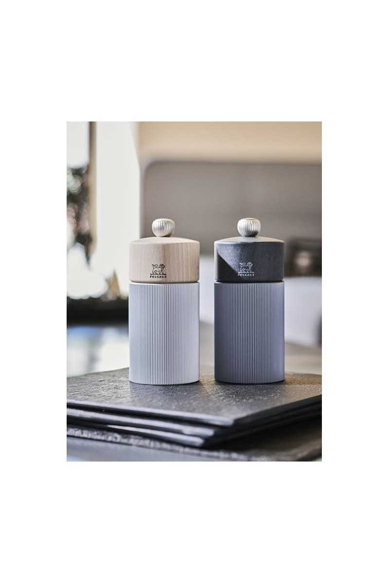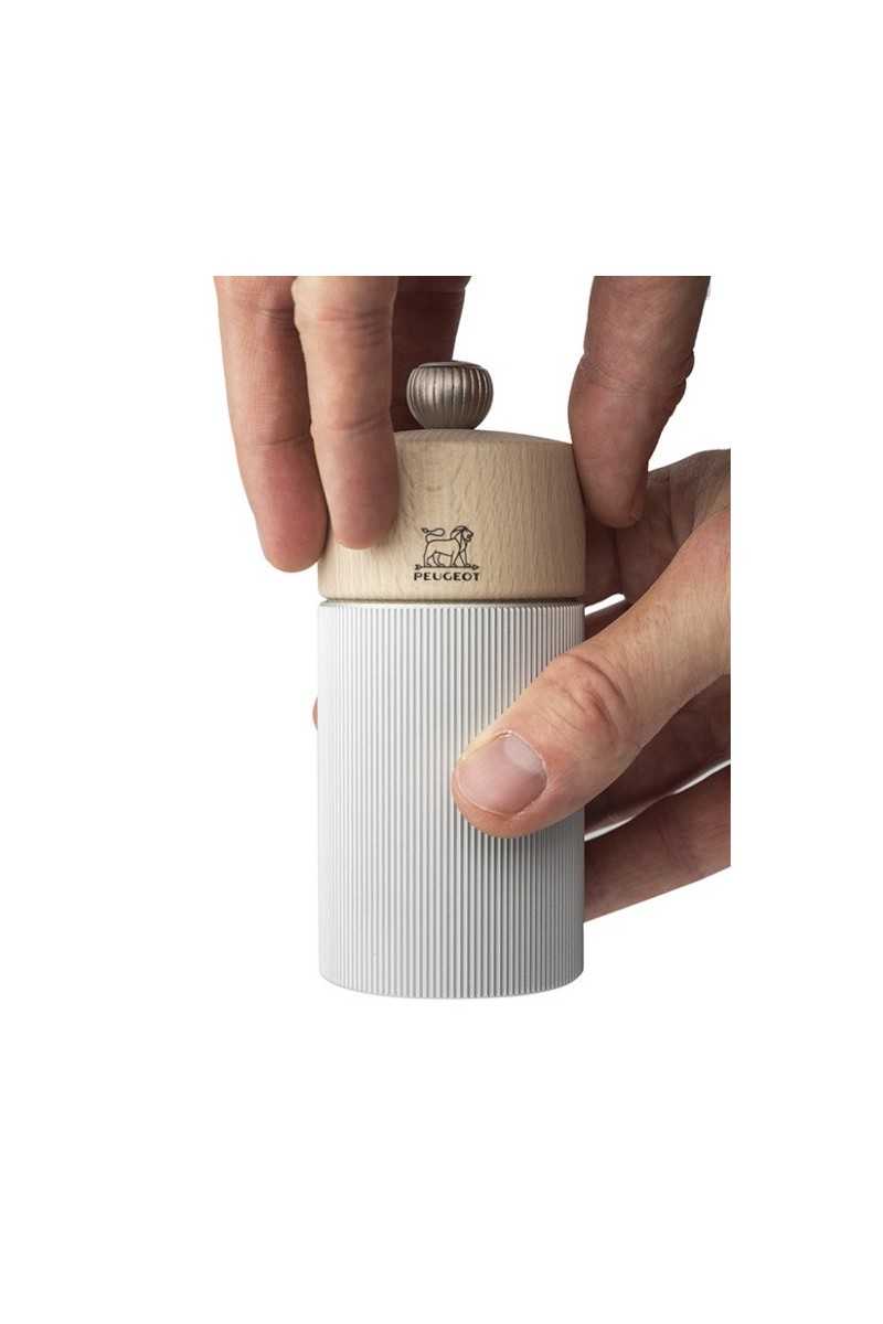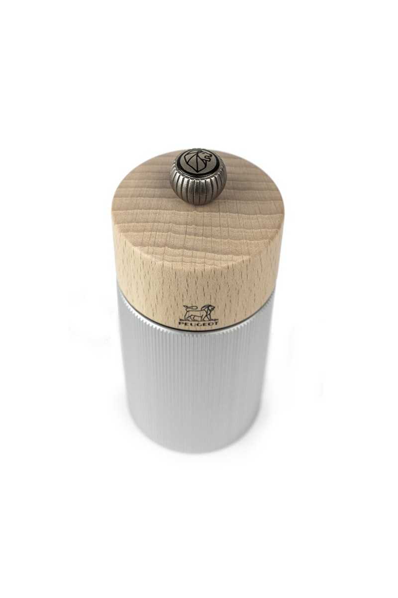 Een kop van natuurlijk hout en een geribbelde aluminium body zijn de materialen die zorgvuldig geselecteerd werden voor deze prachtige Line pepermolen. Ideaal als tafelmodel, biedt het een stijlvolle combinatie en een subliem grafisch effect. Deze pepermolen is gemaakt in Frankrijk en is uitgerust met het beroemde Peugeot-maalwerk met levenslange garantie. Met de knop bovenaan de molen, waar de leeuw op afgebeeld staat, kan de maalgraad makkelijk worden ingesteld.