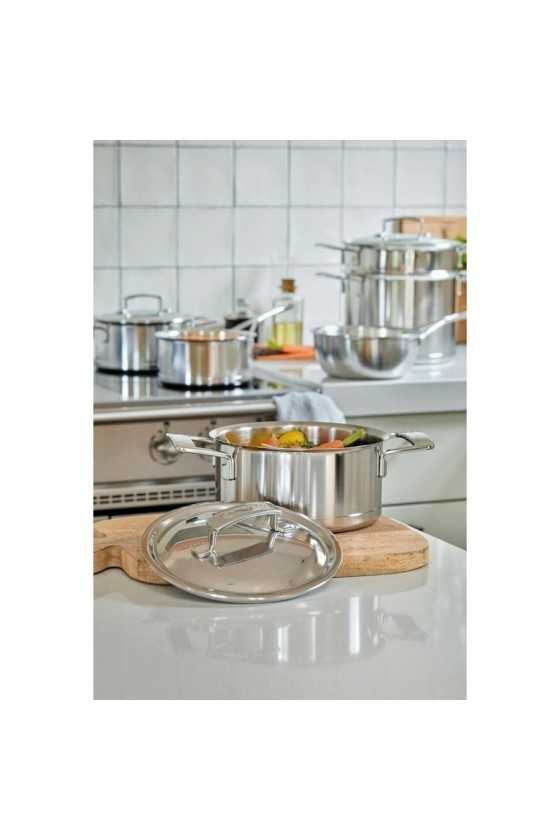 Naast de 30% extra rendement op inductie heeft de Demeyere Silver 7 heeft een dubbelwandige deksel. Dit behoudt de warmte beter waardoor je nog energiezuiniger kunt koken.Â